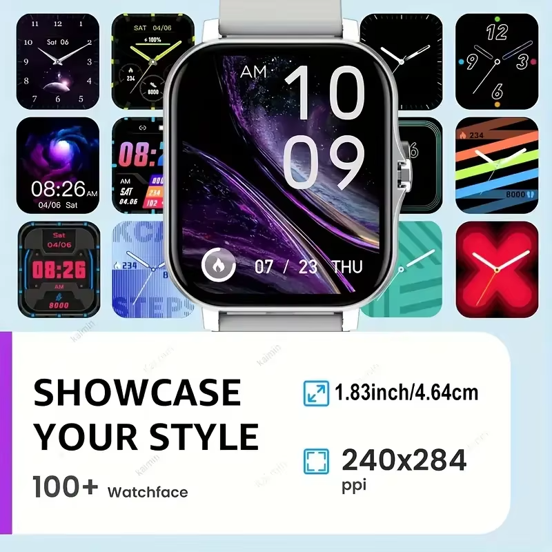 1.83″ Touch Screen Smart Watch, Wireless Call & Music Control, Sports Mode, Compatible with Android & iPhone